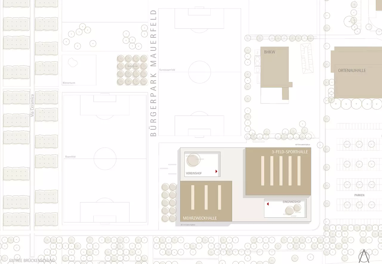 1st prize Multipurpose and 3-field Sports Hall, Lahr