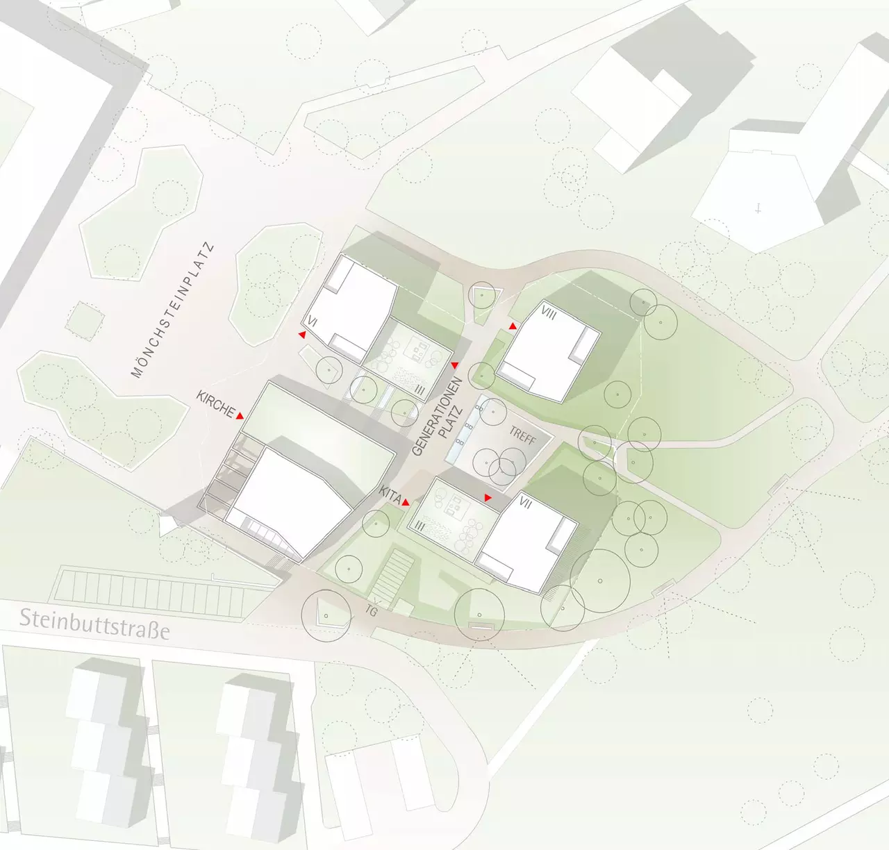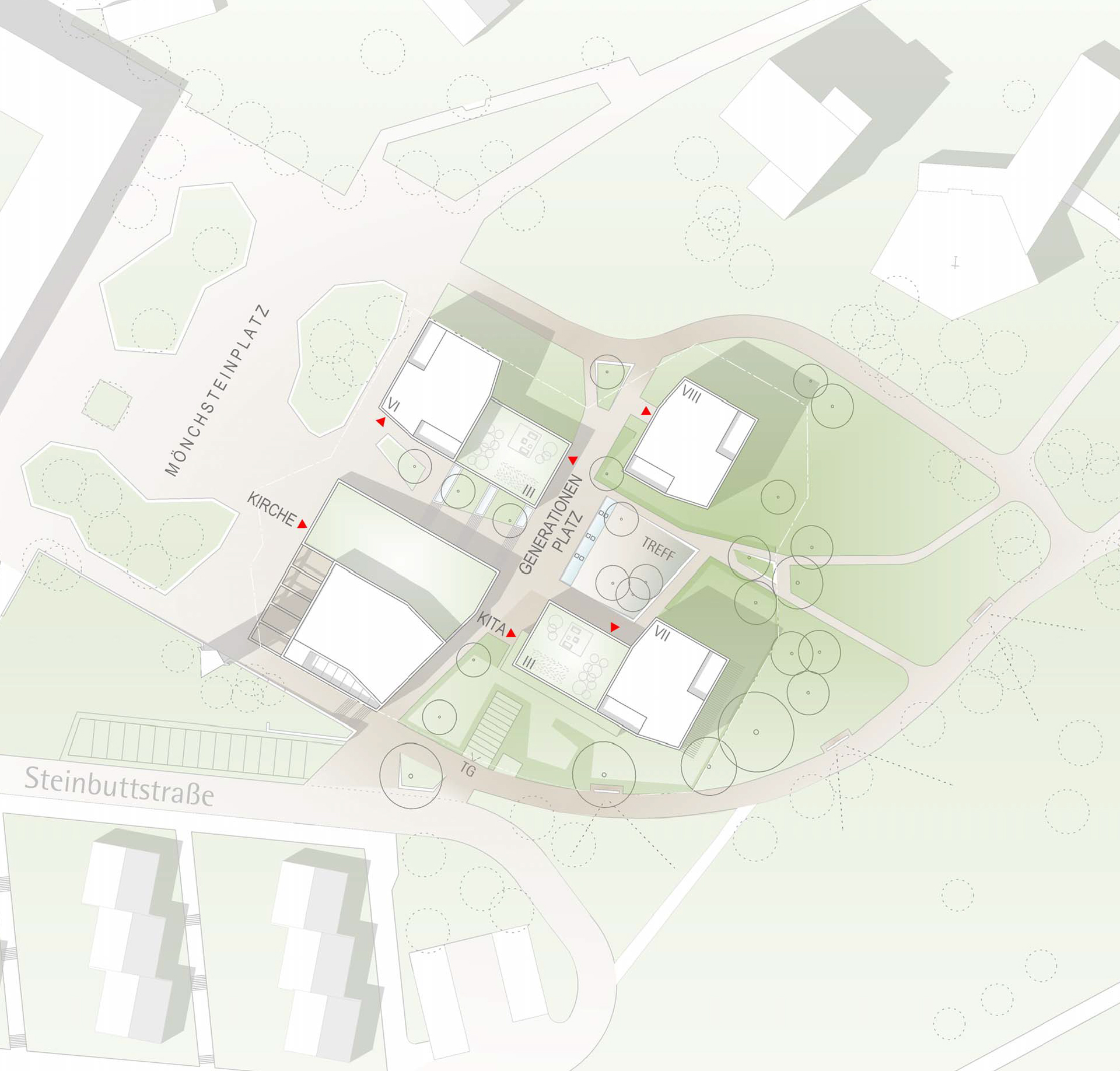 1st prize St. Johannes Maria Vianney Neighbourhood Development, Stuttgart-Mönchfeld