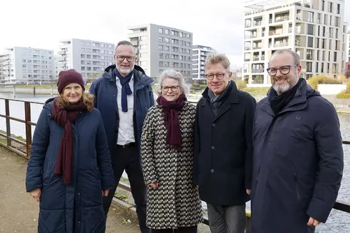 With an official inauguration ceremony, the "Residential Park Mittendrin" in Stutensee-Blankenloch was officially opened. Representatives of the city, project participants, and future residents celebrated the new neighborhood, which offers around 150 apartments. The mix of rental and owner-occupied apartments, along with its barrier-free design, makes this project an important contribution to urban development. Following a tour of the site, the event concluded in a convivial gathering.