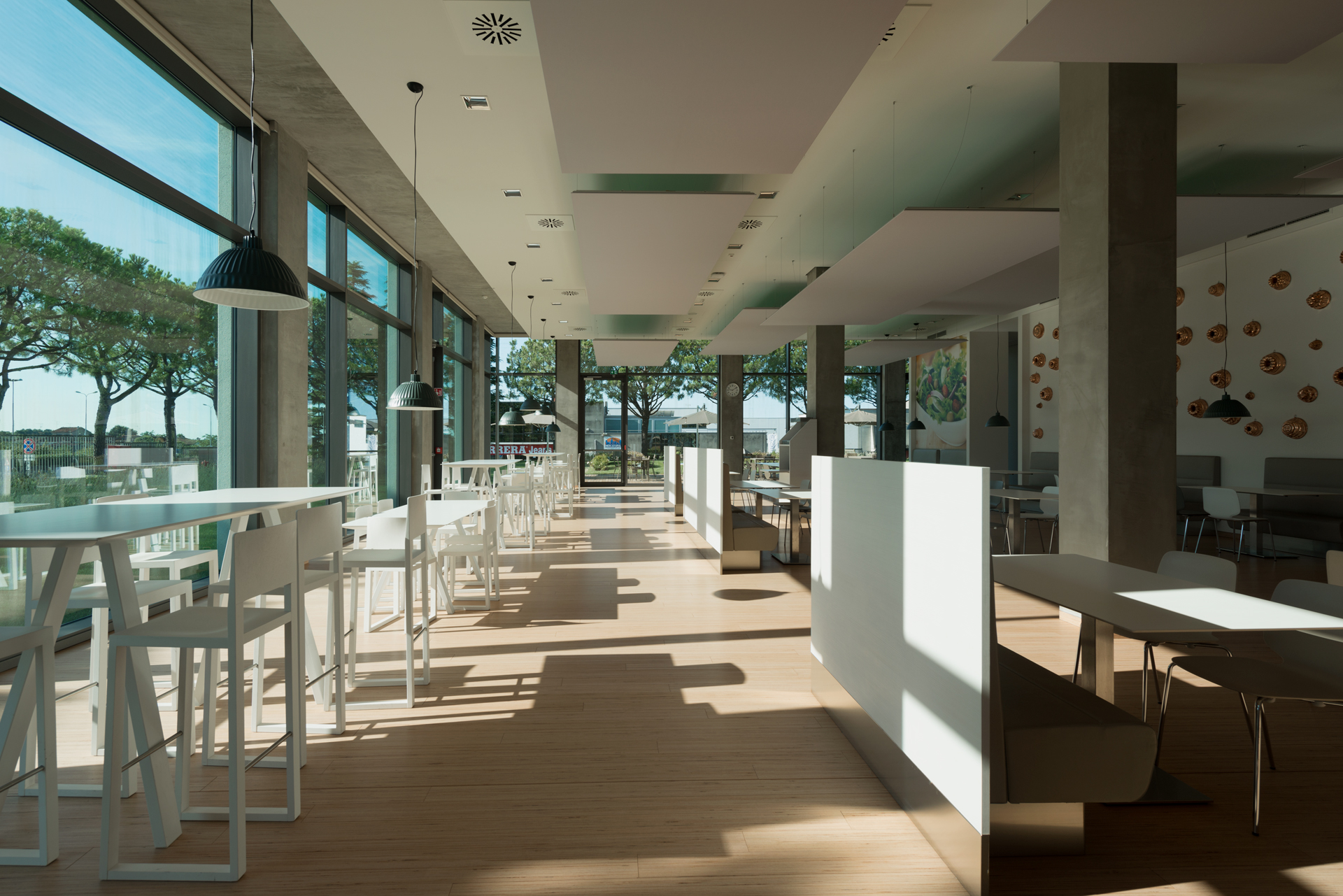 Located on the ground floor, the canteen serves 150 employees with freshly prepared meals for lunch and coffee breaks. Outdoor seating is available in the southeast-facing garden. In addition, an espresso bar is available to employees throughout the day.