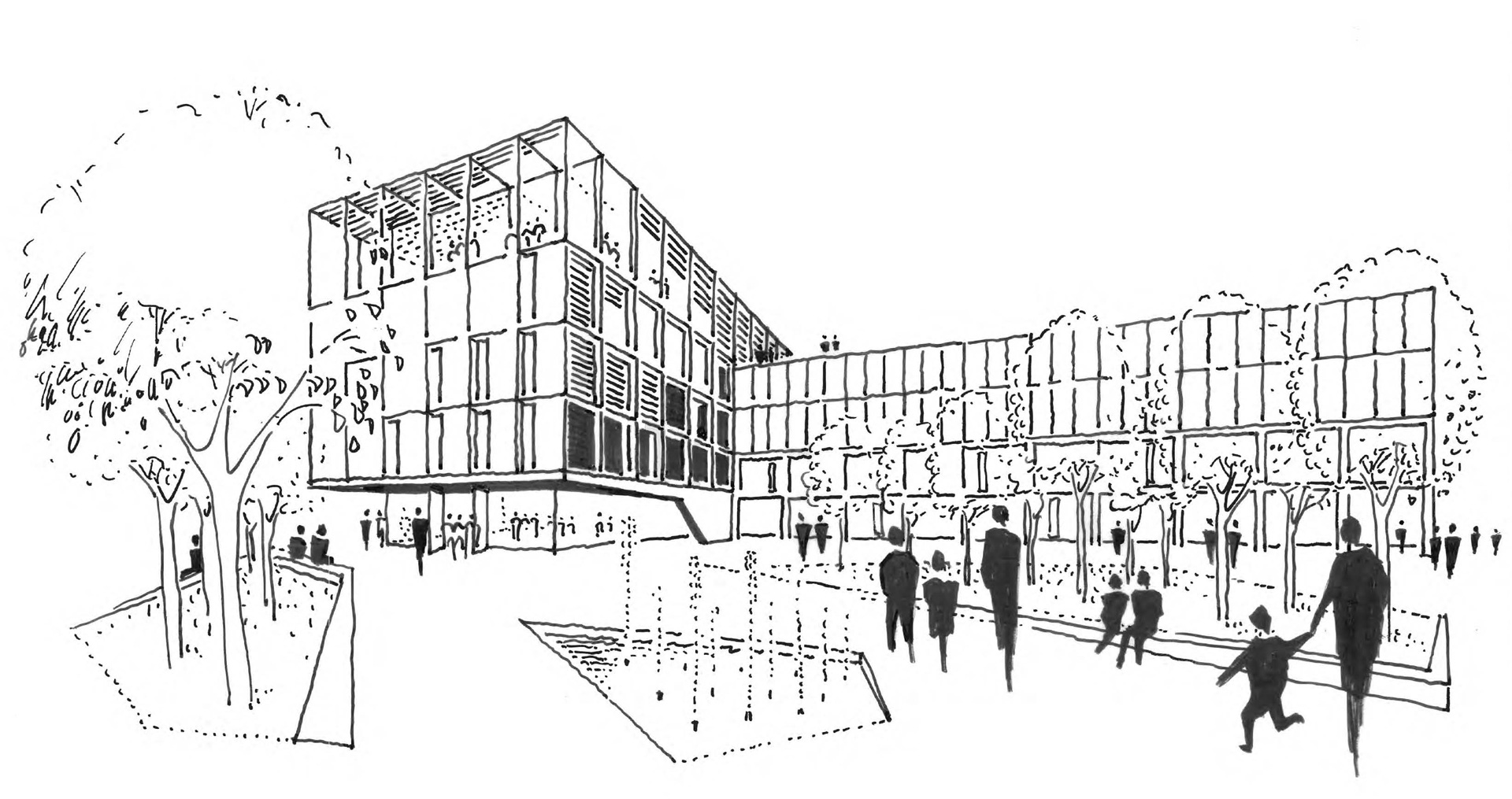 The head building of the new district administration office marks the gateway to the town centre of Rottweil in a harmonious way. The main entrance opens welcomingly to the new town square, seamlessly integrating into this public space. The two-storey existing building is extended by adding a relatively lightweight timber structure on top, creating an appropriate edge towards the town square. Due to the design’s new arrangement perpendicular to the town square, the extension connects the existing buildings and forms a unified whole. The town square serves as a public entrance and forecourt of the new district administration office. The existing trees are grouped and bordered by benches. A water feature enhances the prestigious character of the district administration office. In contrast, the courtyard garden is a secluded space exclusively used by staff.