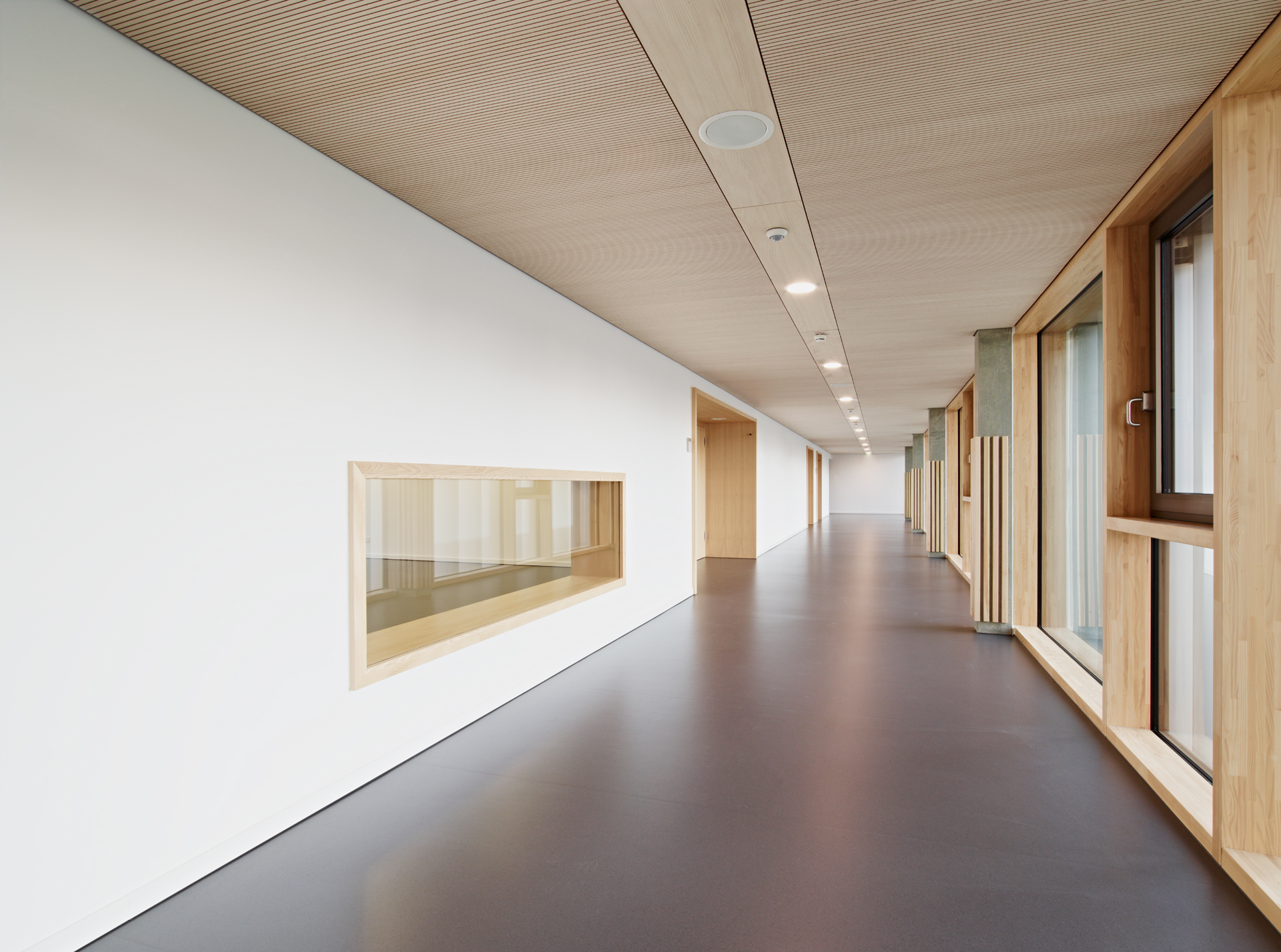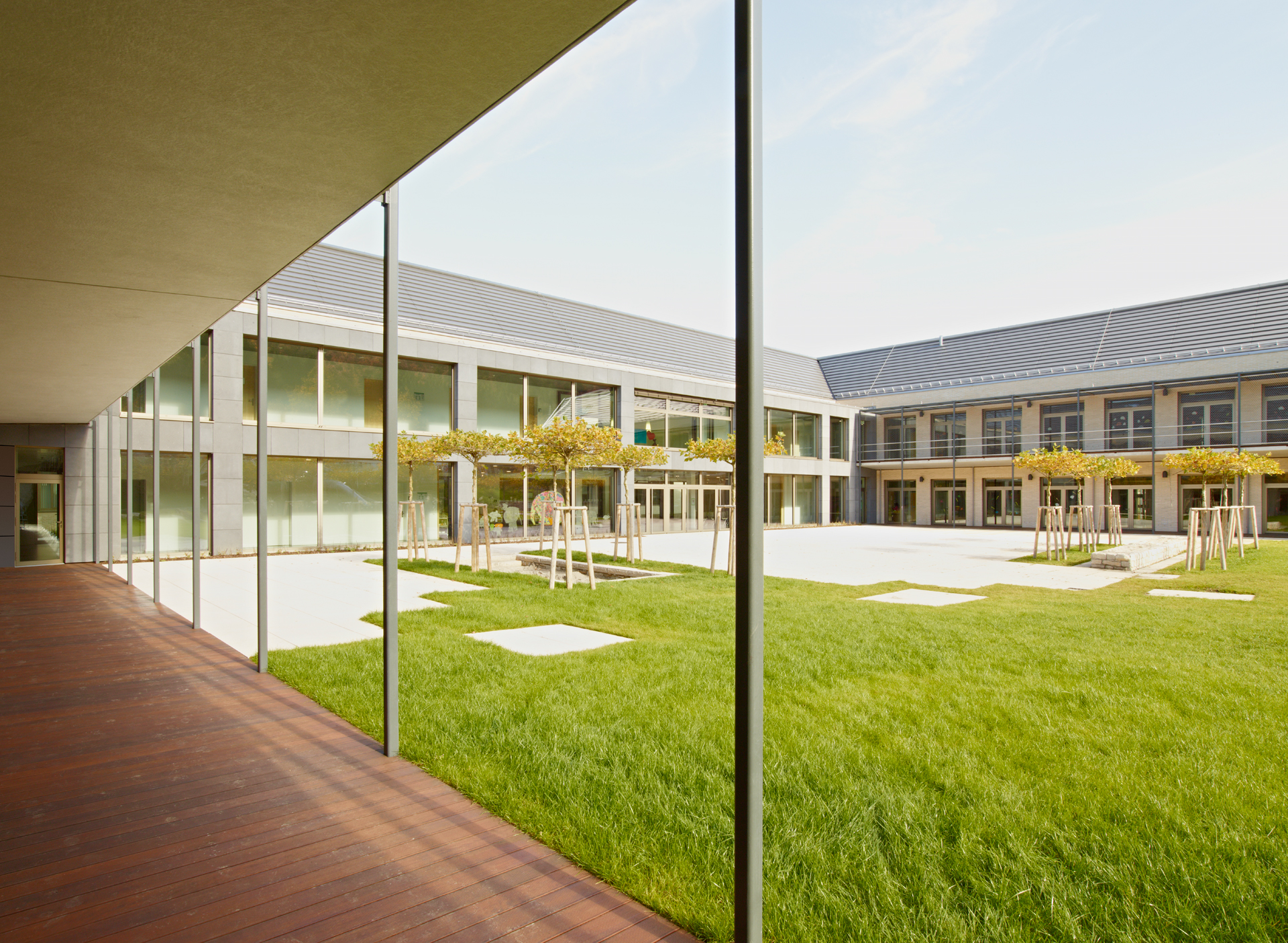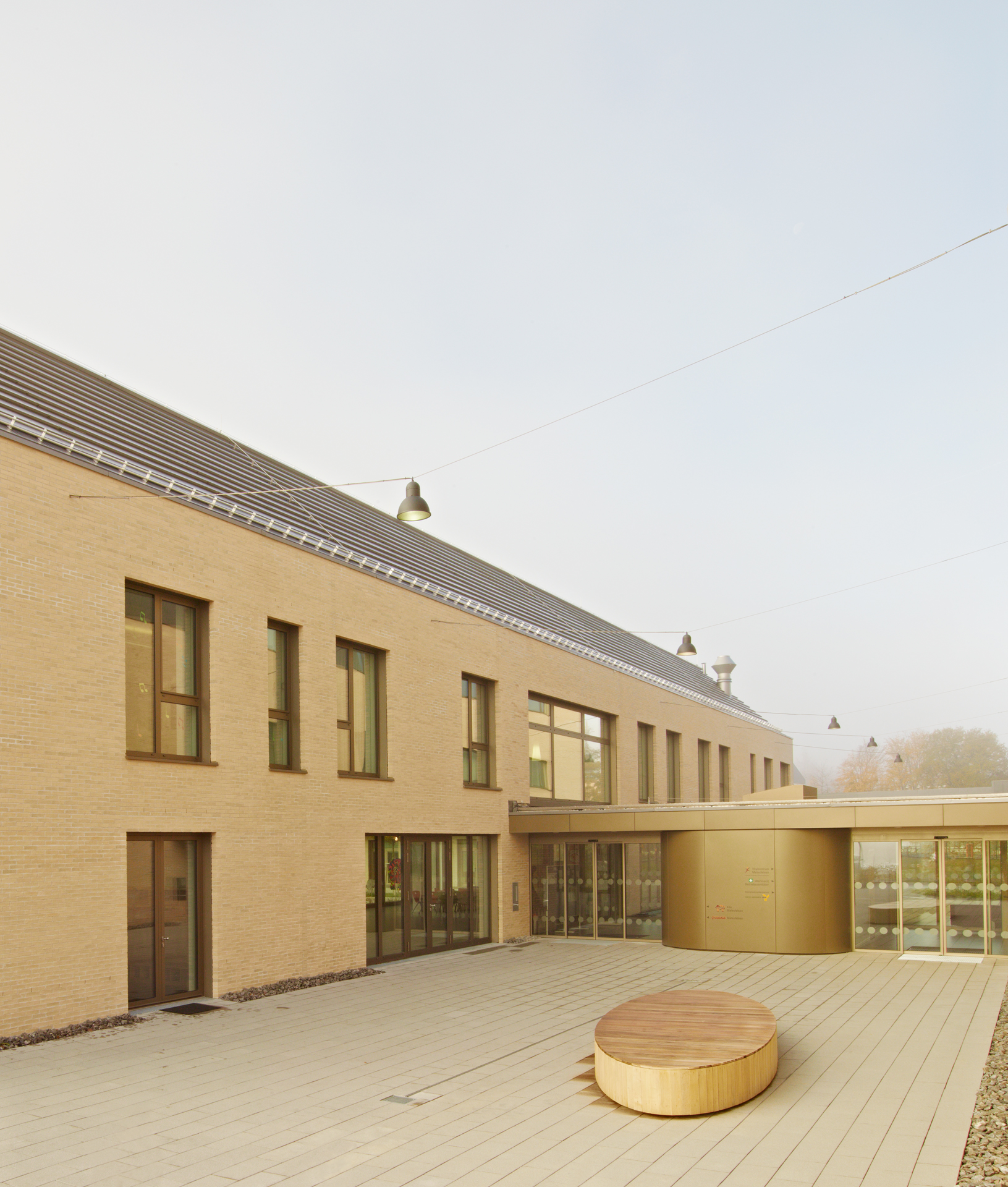 The company Groz-Beckert is the world’s leading supplier of industrial machine needles, precision parts, systems and services for the production and joining of textile surfaces. The company has built a social centre at its headquarters in Albstadt-Ebingen. Two new buildings house the functional units of fitness, physiotherapy, company health insurance, company doctor’s surgery, as well as a primary school and a daycare centre for children. The reduced architectural language and the choice of materials relate to the existing buildings on the factory premises. The health and education centre thus becomes part of the Groz-Beckert company image.