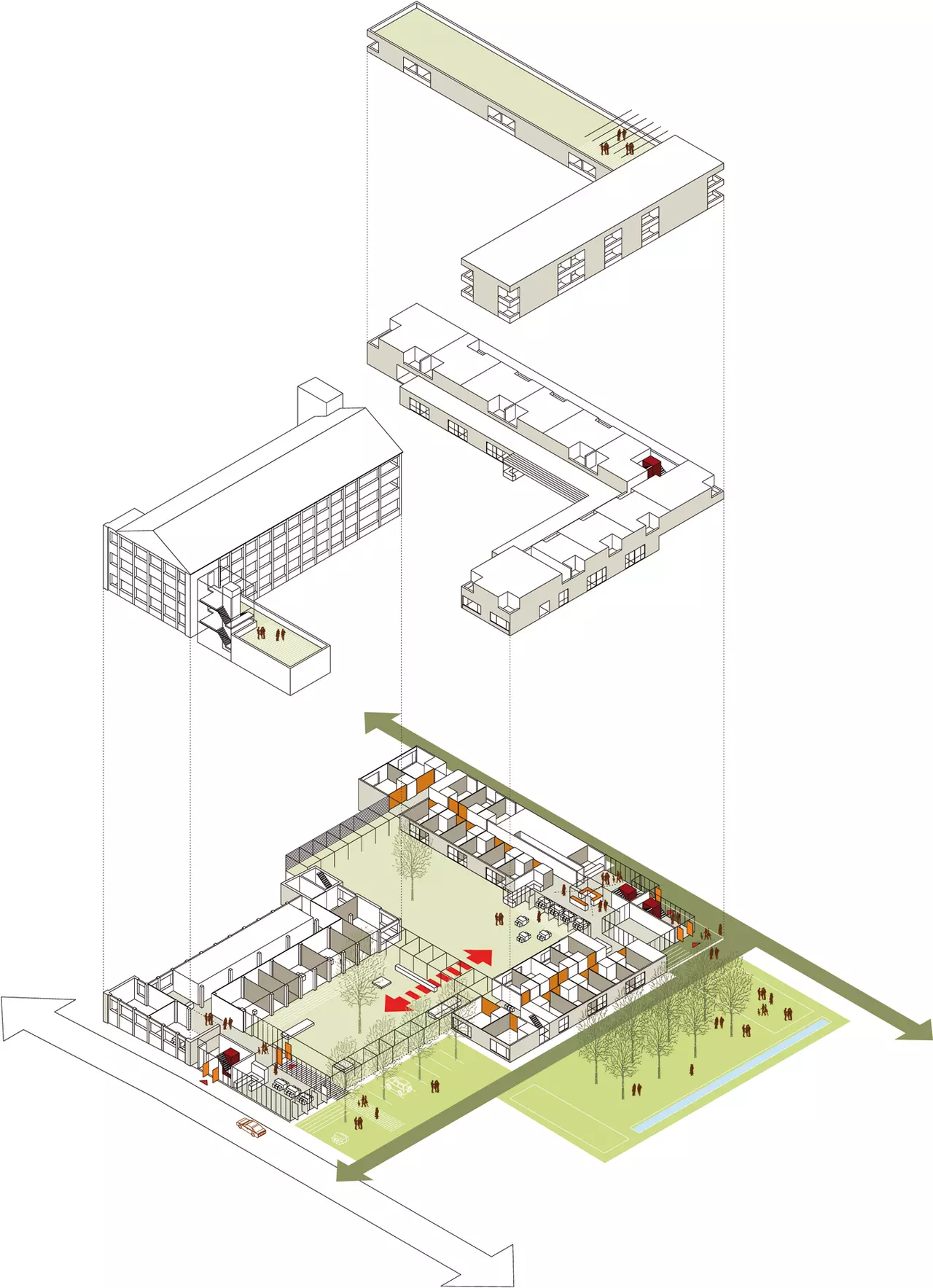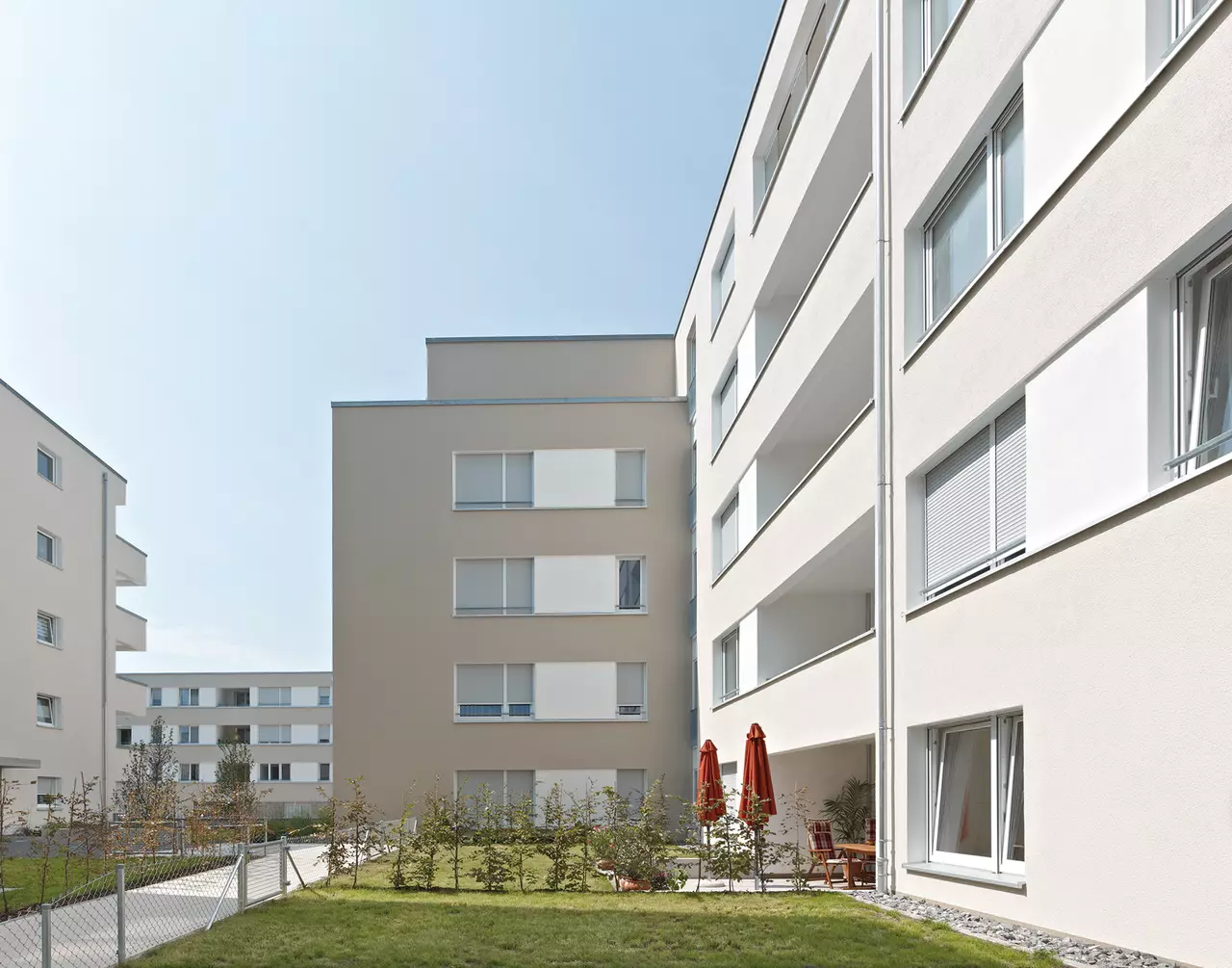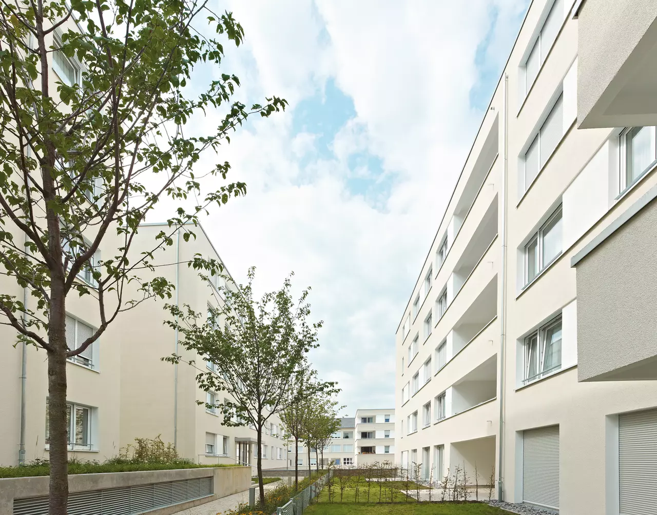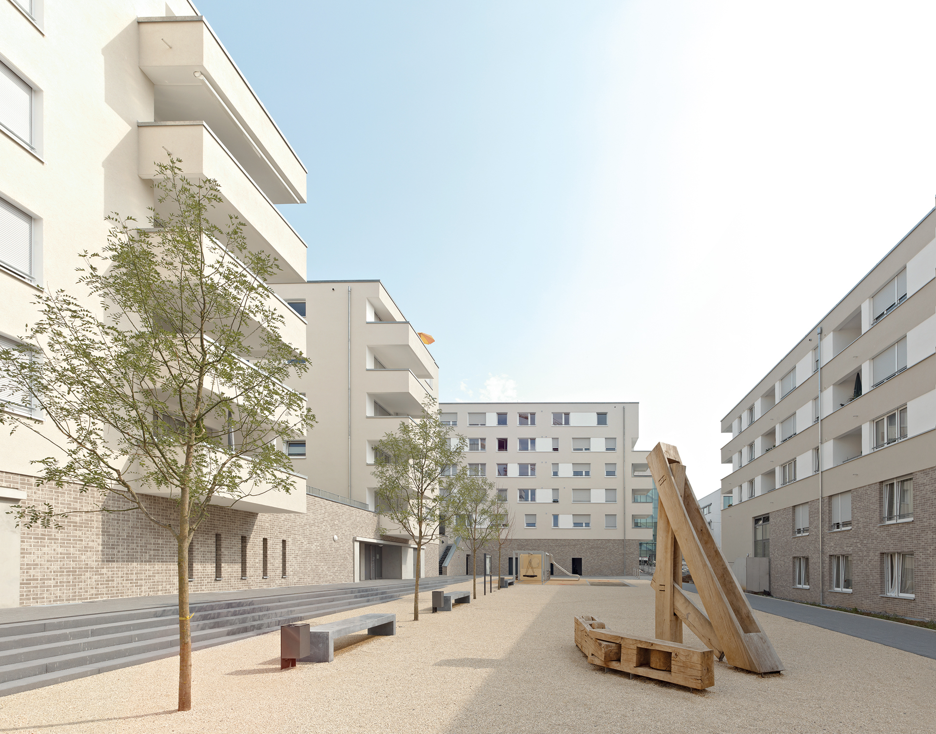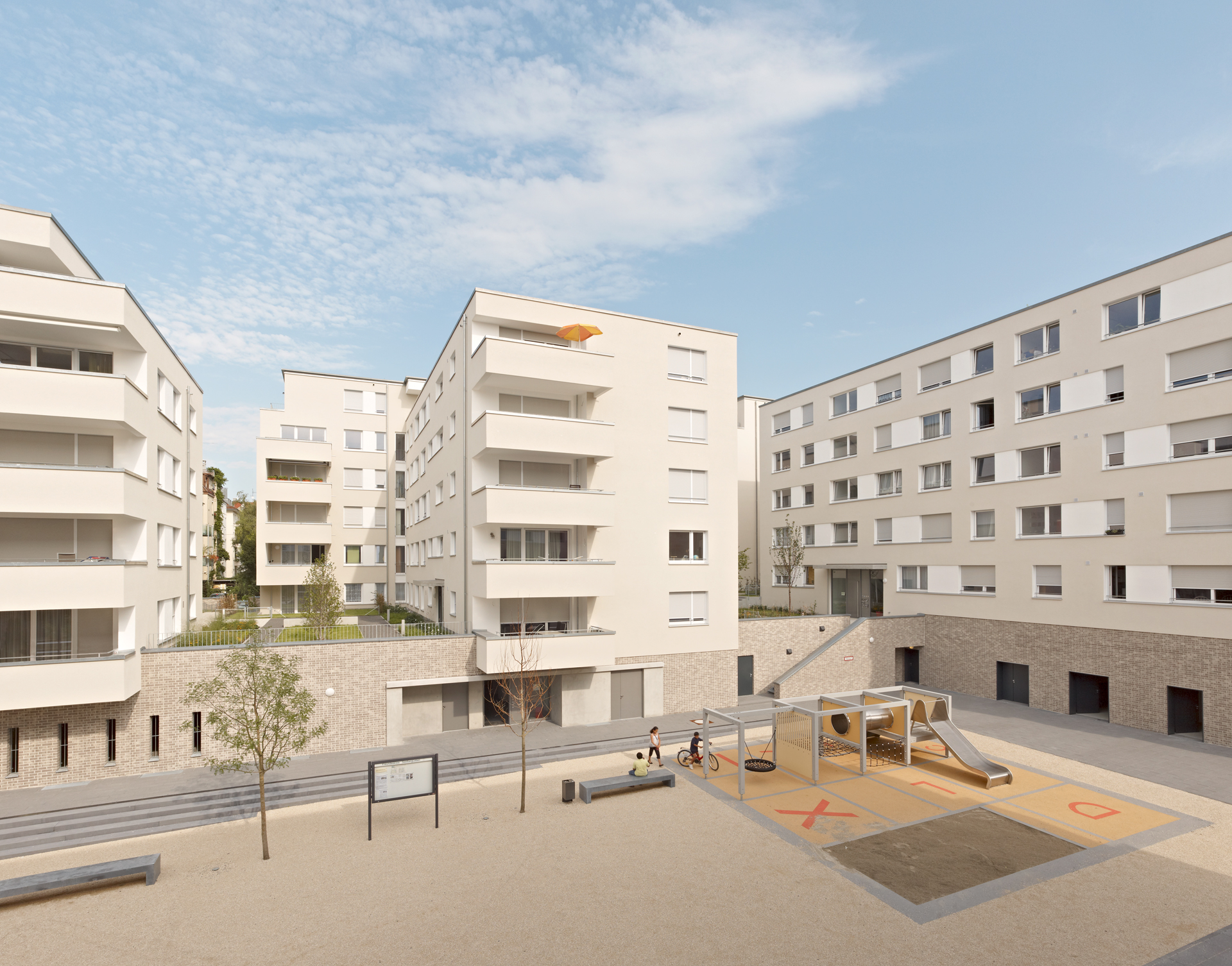 An inner-city residential quarter for both young and old has been developed on a former industrial site in Stuttgart’s Bad Cannstatt district. Condominiums, a nursing home and apartments for senior citizens are grouped around a centrally located neighbourhood square. As a tribute to the industrial architecture, an existing building was preserved and repurposed. The garden of the nursing home and the outdoor area of the daycare centre are connected by a pergola to promote intergenerational interaction.