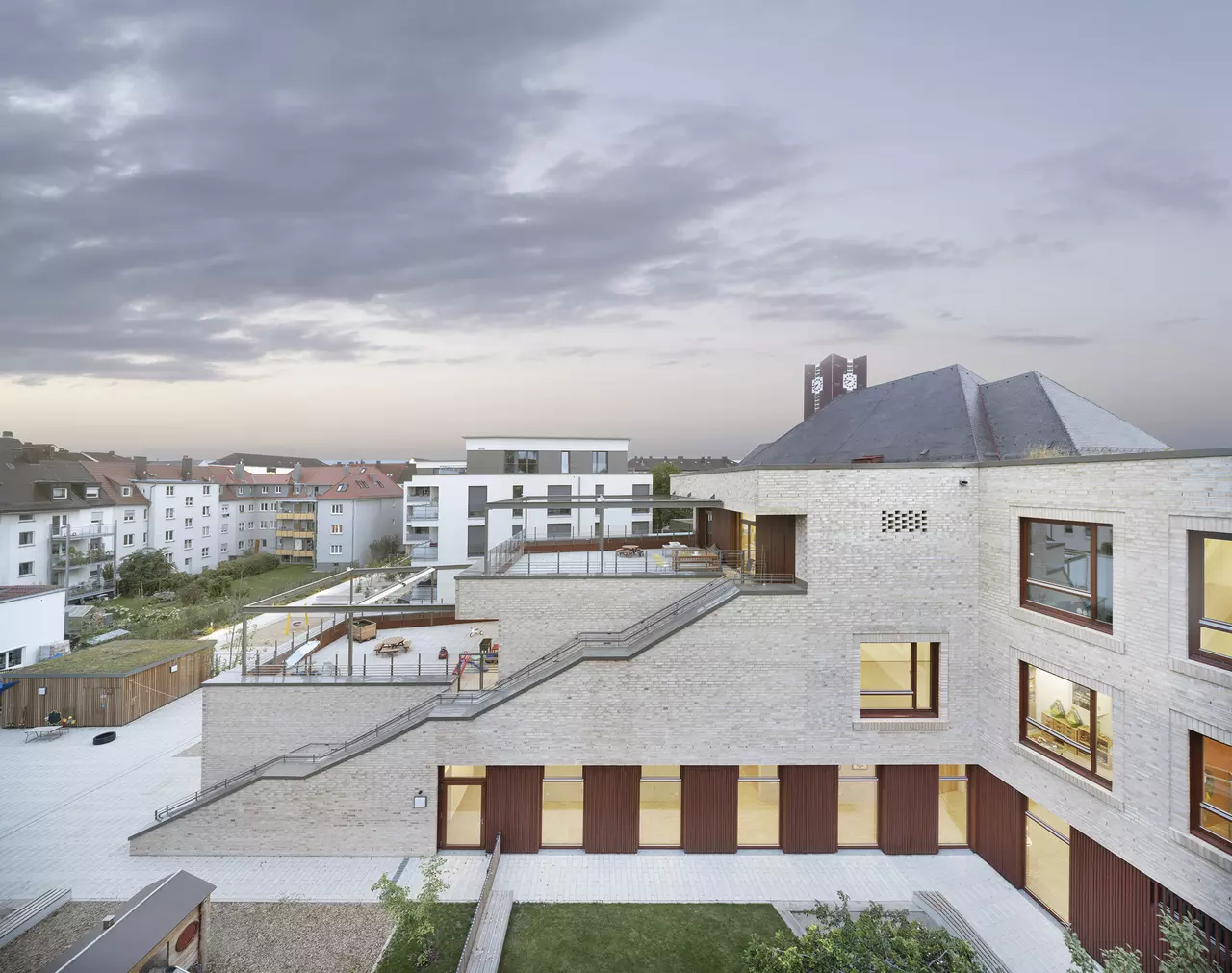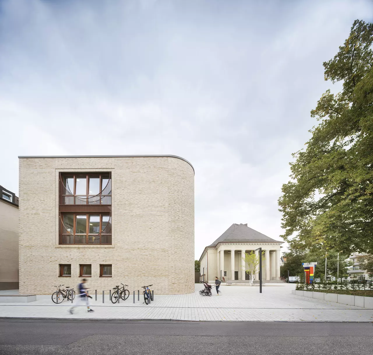Es sollte eine Gesamtlösung für das Gemeindehaus, den Kindergarten und das Pfarrbüro gefunden werden, die sich nur in einem Neubau realisieren ließ. Dies ging einher mit der Verkleinerung von Flächen und Kubaturen und dem Abriss der sehr in die Jahre gekommenen KiTa und des bisherigen Gemeindehauses. Der neue Entwurf des Kirchenareals mit Gemeindehaus, Sakristei, Pfarrbüro, Veranstaltungsräumen und Kindergarten sollte eine Belebung und die Einbeziehung des gesamten städtischen Quartiers nach sich ziehen. Auf dem verkauften Teil des Grundstücks wurde vom Siedlungswerk ein Geschosswohnungsbau mit Miet- und Eigentumswohnungen für Menschen aus allen Kreisen der Gesellschaft realisiert. Großzügig gestaltete Freianlagen ergänzen das Gesamtensemble. In diesem Zusammenhang erfuhr auch die Um- und Neugestaltung des Vorplatzes der Kirche eine wichtige Bedeutung.