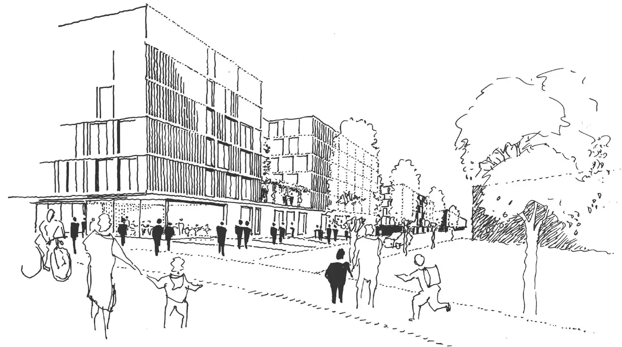 Auf einer Fläche von ca. 28.15 x 125.60 m entsteht ein 6-geschossiges, teilunterkellertes Studierendenwohnheim. Des Weiteren finden dort auch eine Kindertagesstätte, eine Hausmeisterwohnung, Lagerflächen und Beratungsräume des Studierendenwerks Frankfurt seinen Platz. Der Baukörper wird von der Hollerbornstraße aus angefahren und säumt über seine gesamte Länge die Campusachse der Hochschule.