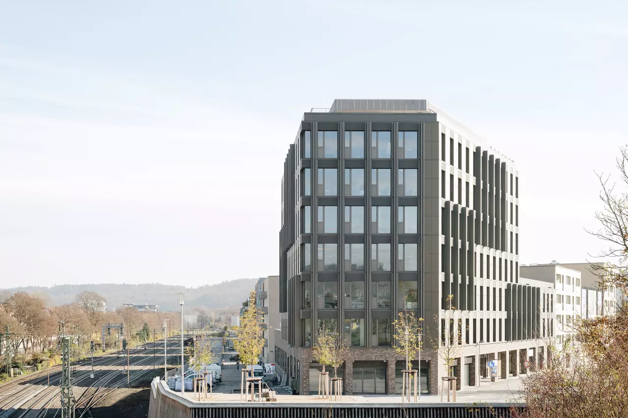 Die „Westspitze“ ist ein in Holz-Hybrid-Bauweise errichtetes, siebengeschossiges Gewerbe- und Bürohaus und zählt zu den ersten Projekten dieser Größenordnung in Deutschland. Entworfen wurde es im Auftrag der Westspitze Gewerbebau GmbH & Co. KG, an der die UmweltProjekt GmbH (eine Tochter der Umweltbank AG Nürnberg) mit 50 Prozent und rund 10 Privatanleger aus Tübingen und Umgebung mit den restlichen 50 Prozent beteiligt sind. Die Bauherrschaft wünschte sich ausdrücklich ein Gebäude mit hohem ökologischen Anspruch und den Einsatz von Holz für das Tragwerk. Energetisch war der KfW-55-Standard einzuhalten; ein anspruchsvolles Ziel für ein Bürogebäude.