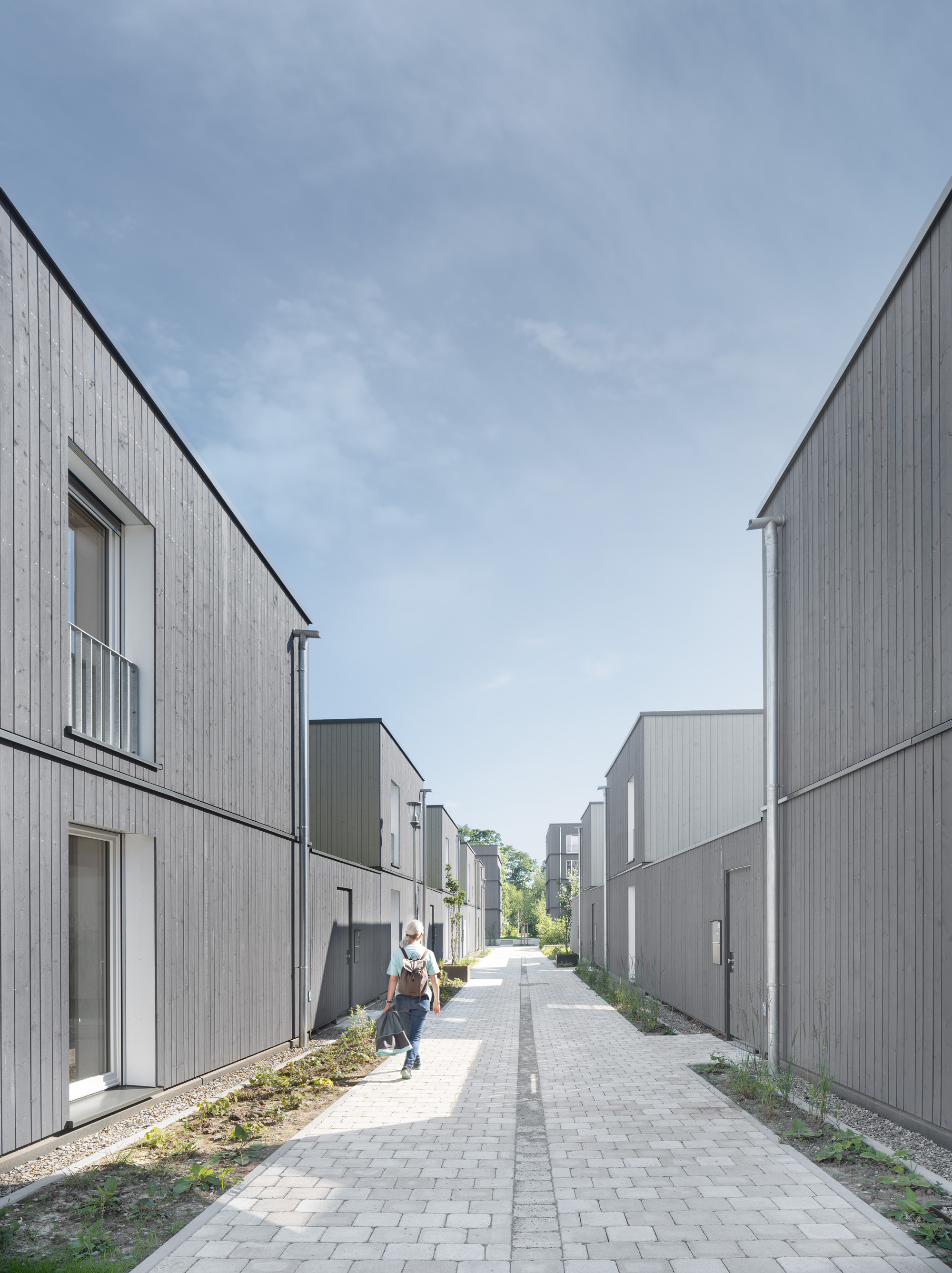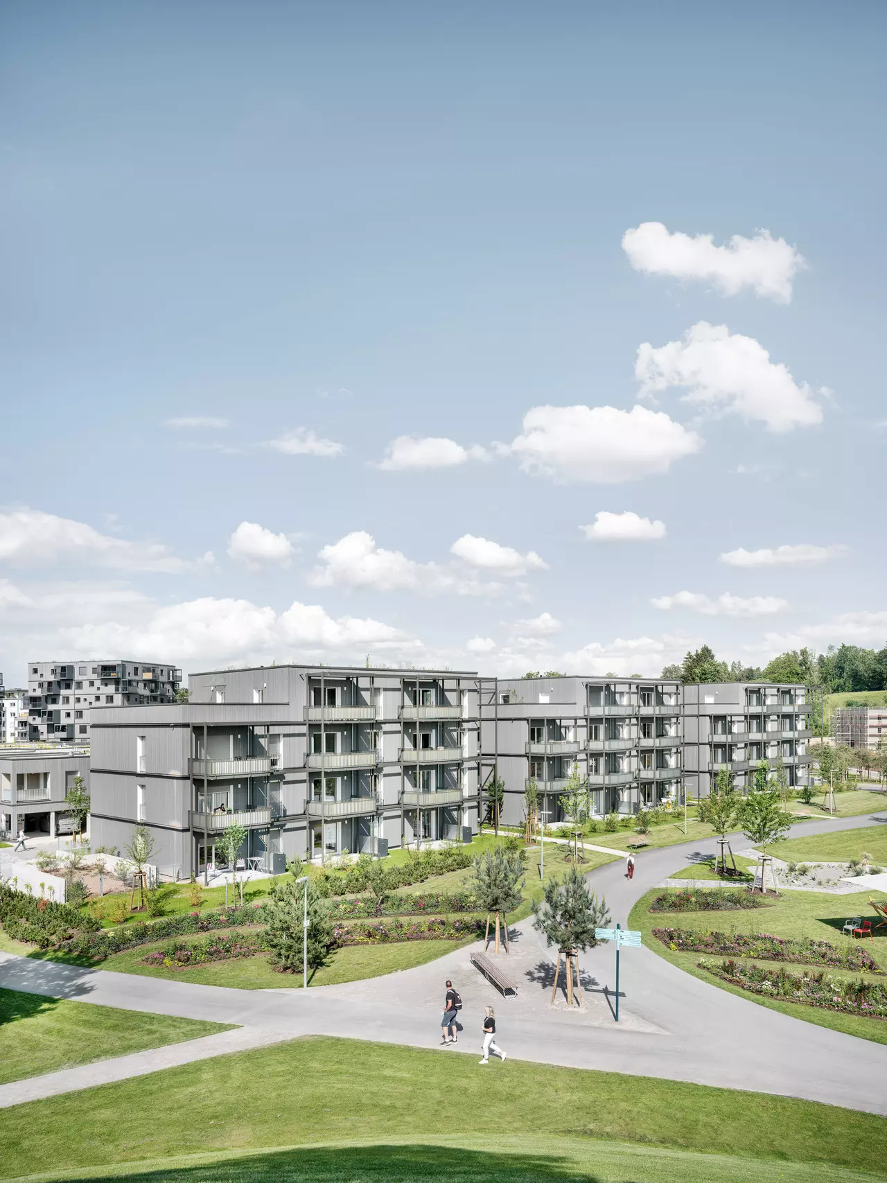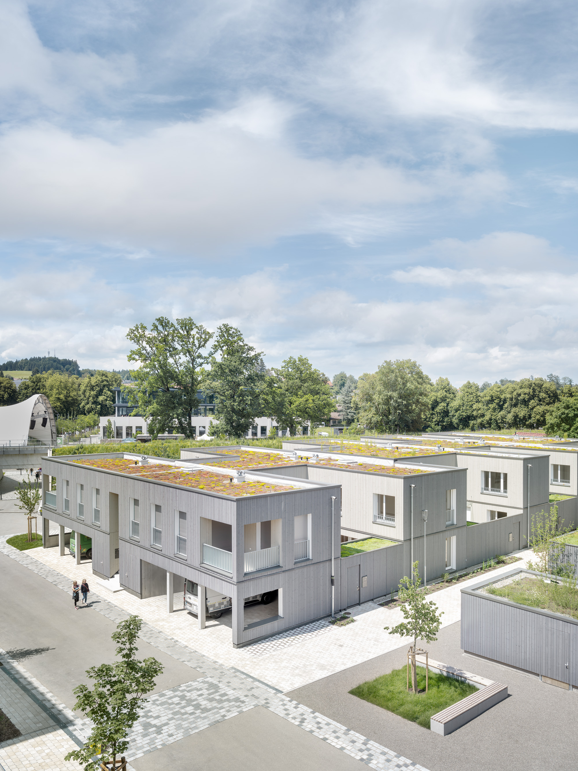 Davon träumen wir alle: in guter Gemeinschaft miteinander zu leben. Es ist nicht der alleinige Schlüssel zum (Wohn-)Glück, aber ein gutes nachbarschaftliches Umfeld trägt wesentlich zu einem entspannteren und entschleunigten Alltag bei. Wie und wo wir uns begegnen, wird maßgeblich durch die Architektur und den städtebaulichen Entwurf eines Quartiers beeinflusst. Eine gelungene Quartiersbebauung, die das gute Miteinander in den Mittelpunkt stellt, haben wir im Rahmen der Landesgartenschau 2024 in Wangen im Allgäu umgesetzt. Gemeinsam mit der Bauherrin, der Siedlungswerk GmbH, haben wir eine lebendige, funktionierende Mischung unterschiedlichster Wohnungsgrößen und -formen in Holzbauweise geschaffen.