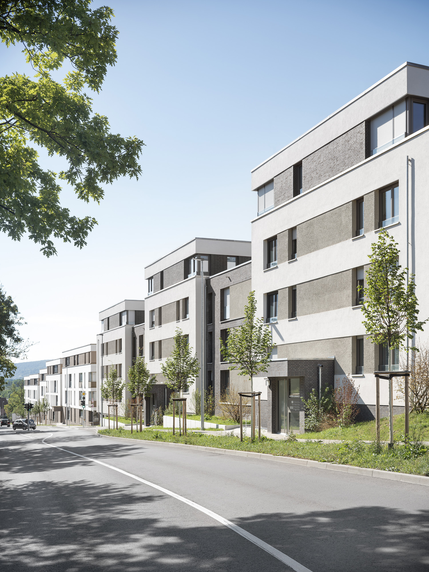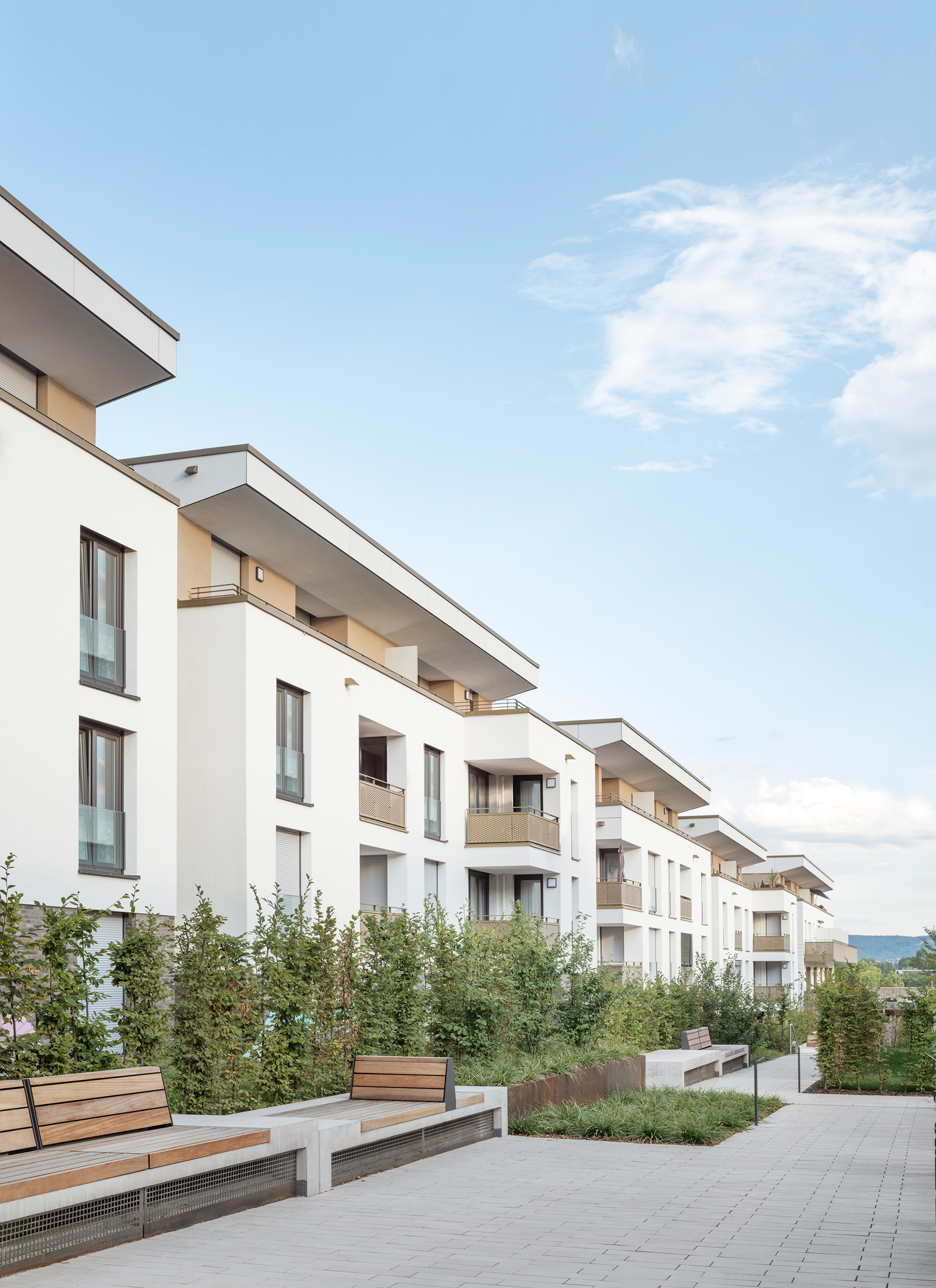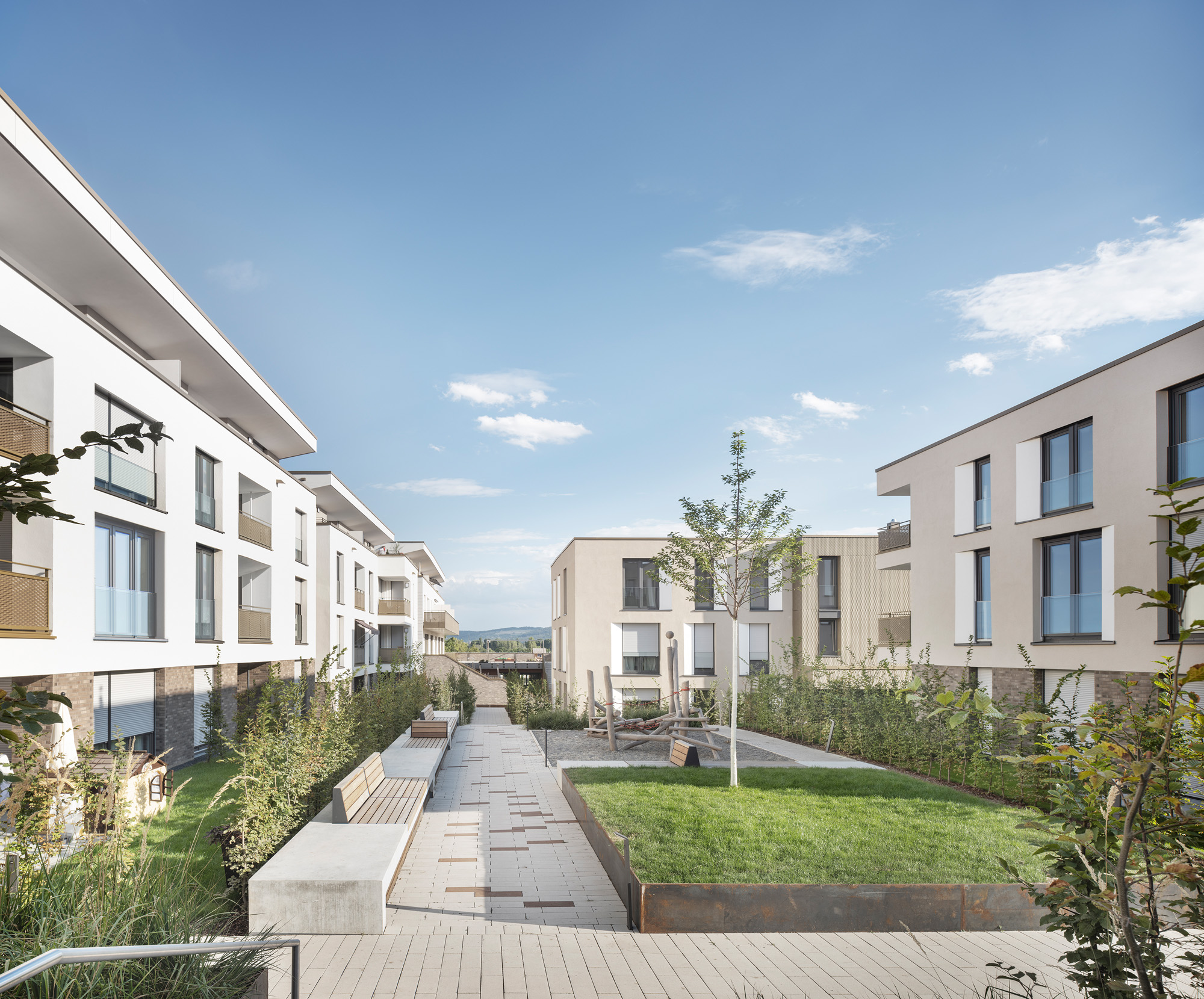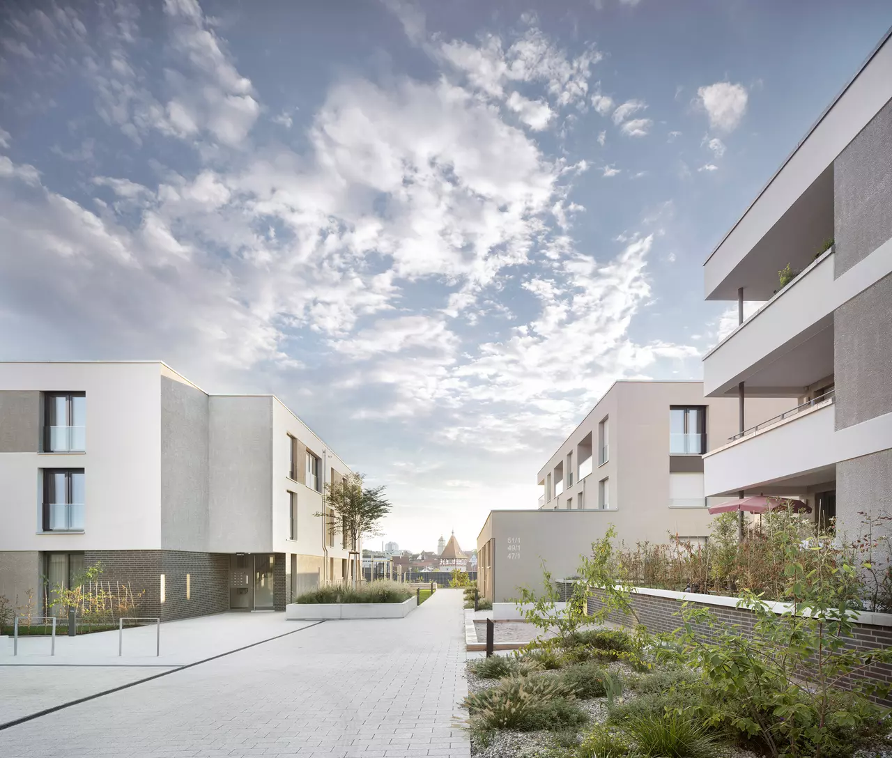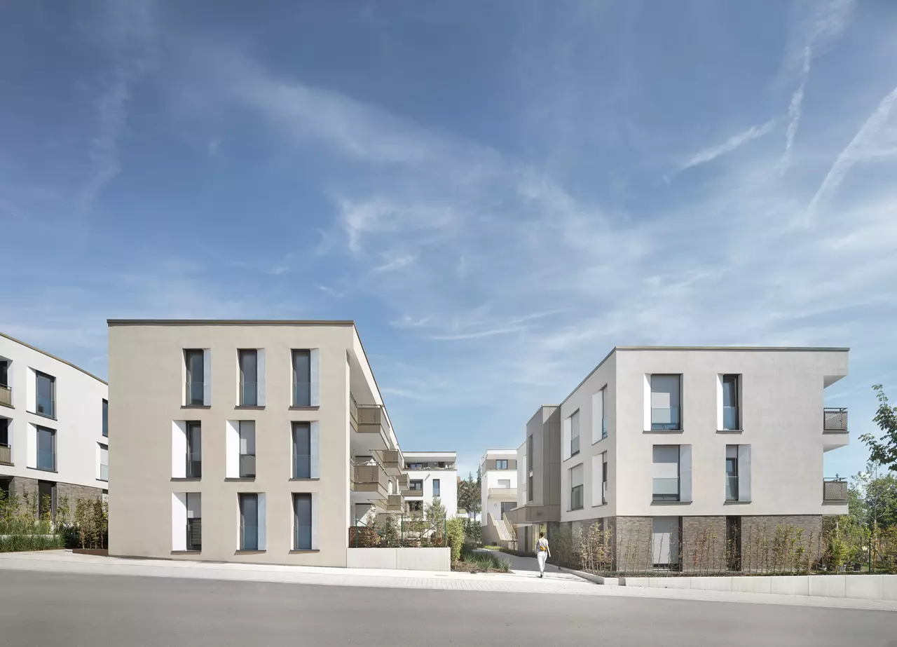 Im letzten Bauabschnitt (Baufeld 5) entstanden 8 Mehrfamilienhäuser mit Tiefgarage, mit 46 Mietwohnungen, 38 Eigentumswohnungen und einer Kindertagesstädte in Konventioneller Massivbauweise mit Flachdachkonstruktion.