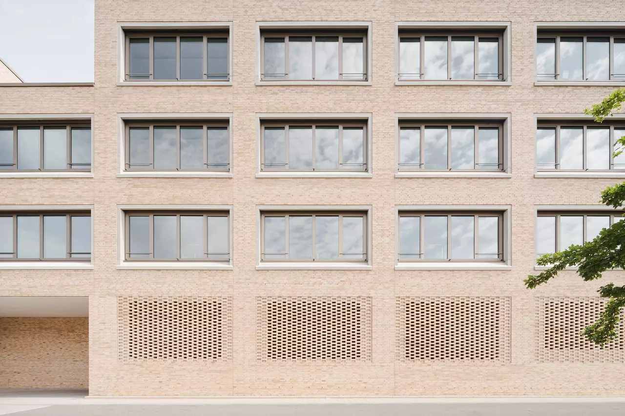 In Bezug auf die Nachhaltigkeit wurden die Möglichkeiten bis ins Detail ausgelotet. So wurde mit der Klinkerfassade eine weitestgehend wartungsfreie Fassade gewählt und mit einer Mineralwolldämmung ebenfalls eine möglichst ökologische Lösung gefunden. Auch Aspekte des Recyclings Cradle-to-Cradle wurden berücksichtigt. Im Wesentlichen erfolgt die Energiegewinnung für Heizung und Kühlung über einen Abwasser-Wärmetauscher, und der Strombedarf wird zu einem guten Teil über eine PV-Anlage abgedeckt.