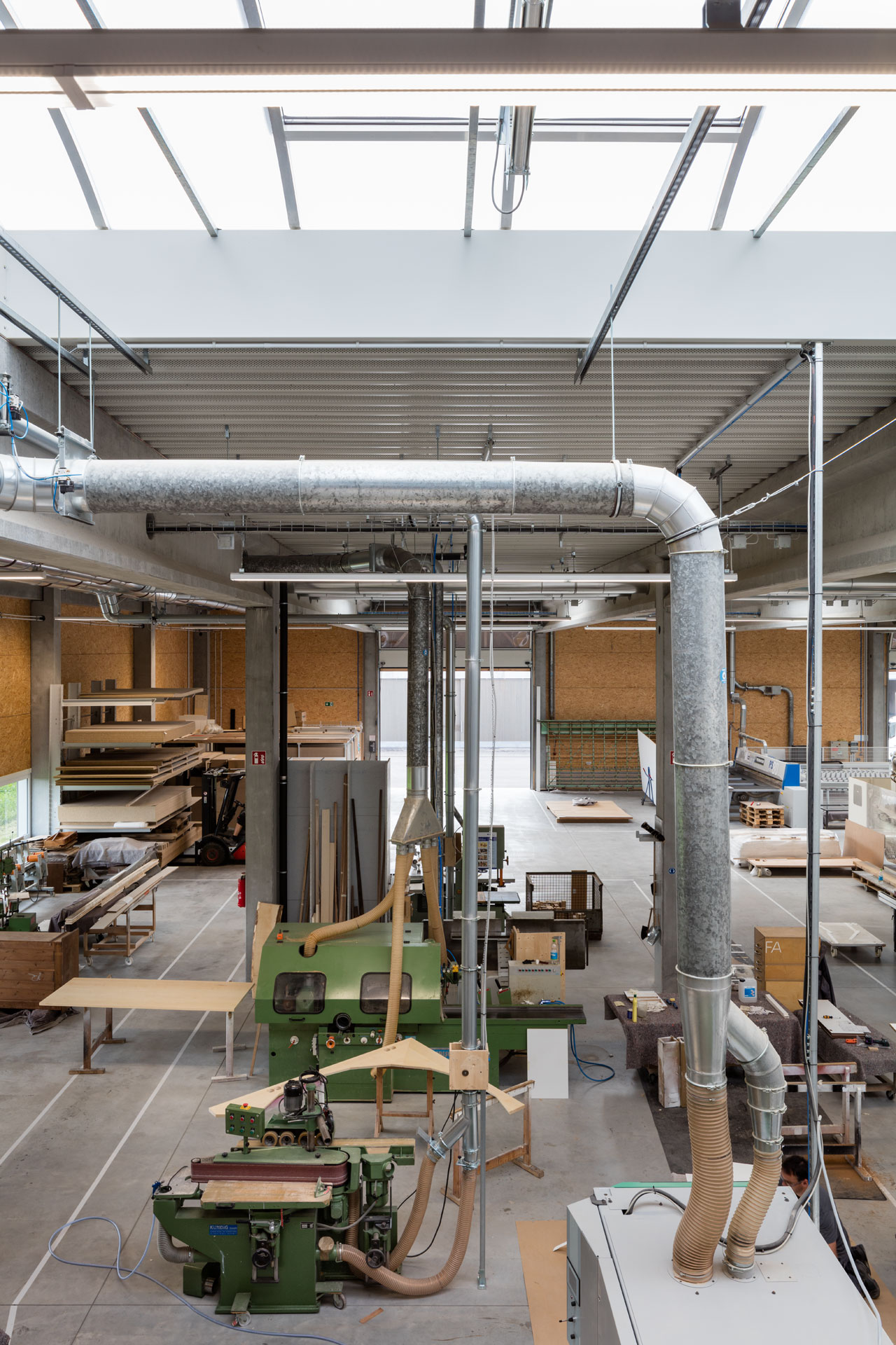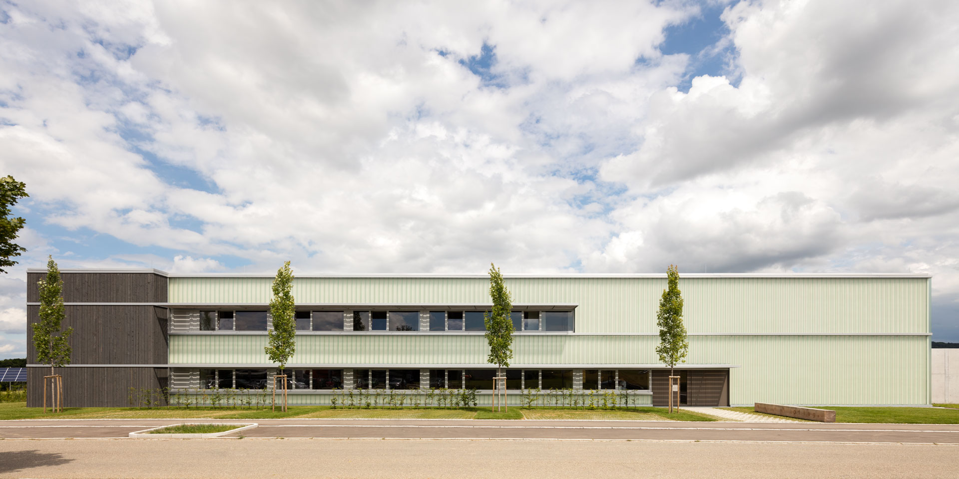 In enger Nachbarschaft zu Tübingen befindet sich der Unipro-Gewerbepark für Betriebe mit technologisch hochwertigen Produkten und Dienstleistungen. Die Firma Pflug erstellt individuelle CNC-Produkte für den anspruchsvollen Innenausbau, für Messen, Museen und für die Industrie. Der Bereich für die Fertigung ist außen mit dunkelgrauem Holz verkleidet, der Bürotrakt im Kontrast dazu mit hinterleuchteter Glasfassade.